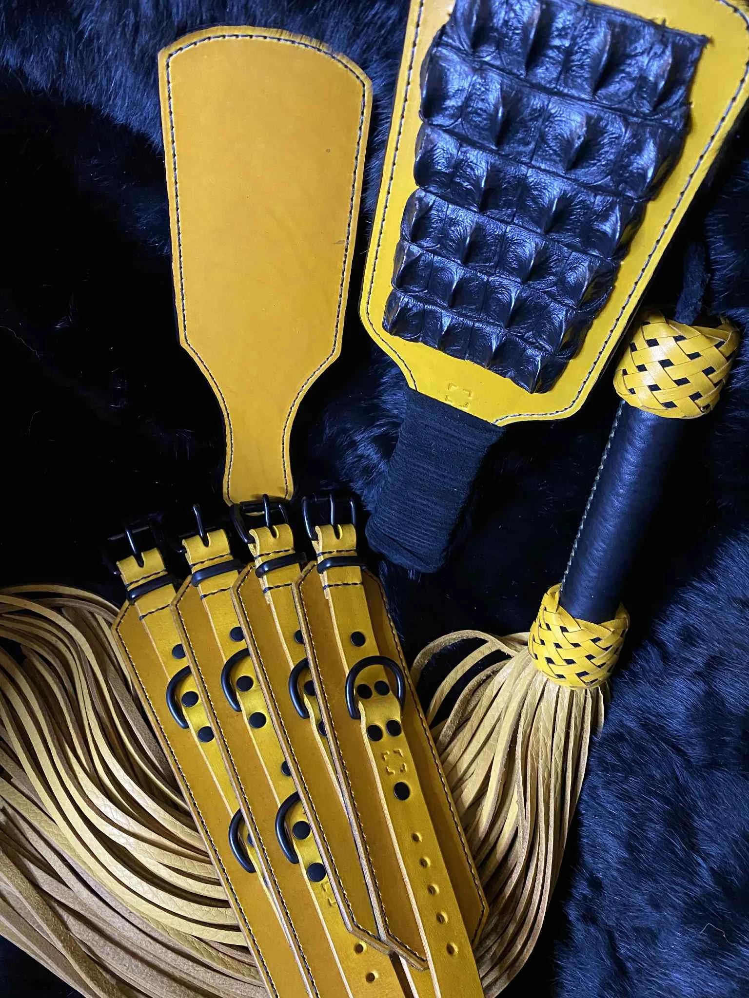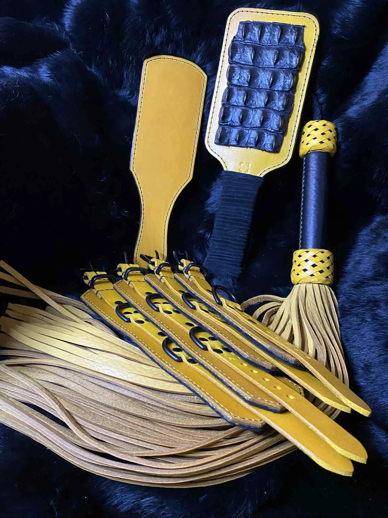 Categories: All Cuff Sets Floggers Paddles Whips Leashes Collars Bundles Shop Bespoke Collections Naughty List - Holiday 2025 Valentine's 2025 Hats Bags Fashion The Bear Cave SALE All / Collections / Naughty List - Holiday 2025 Yellow - Naughty List Bundle $900.00 Brown - Naughty List Bundle $875.00